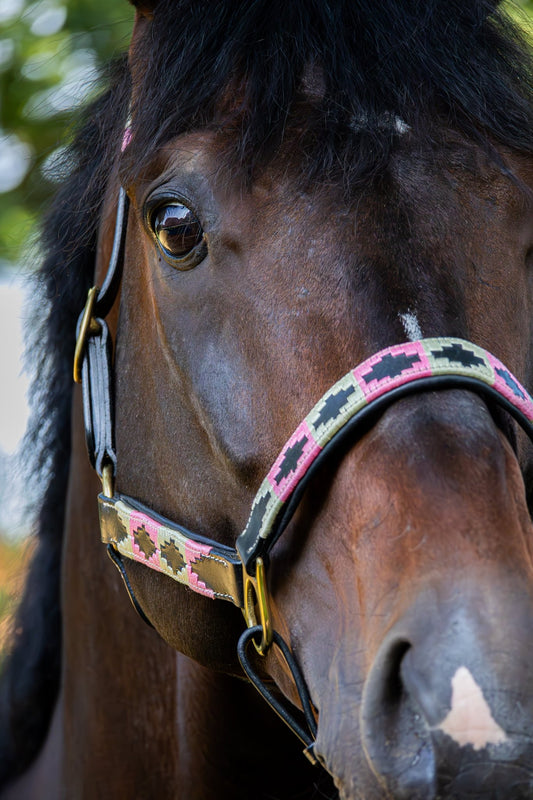 Leather Polo Halter 3x Pink – Handmade & Adjustable – MTB Equestrian