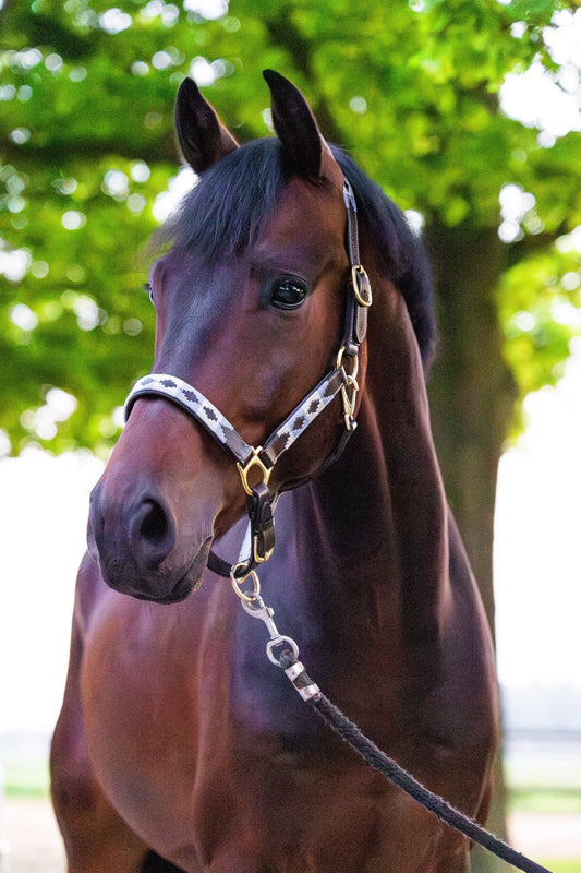 Leather Halter with Glitter Gold – Adjustable & Luxury – MTB Equestrian